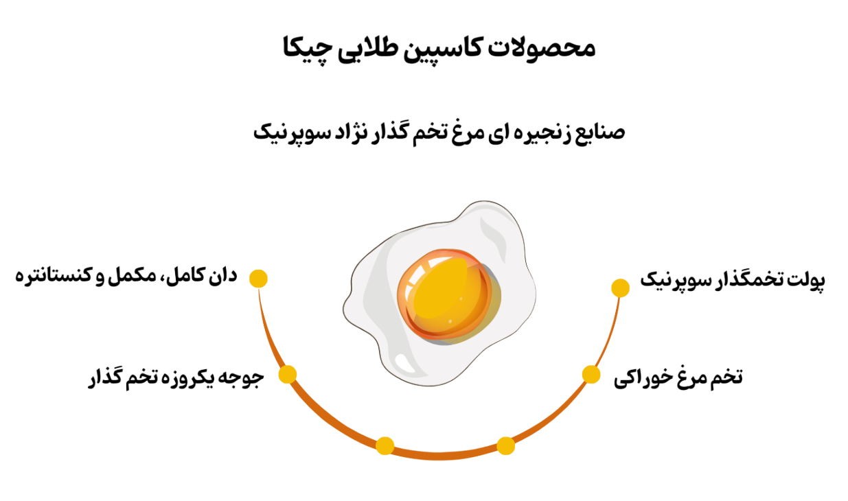 تعد شركة Caspian Golden Chika حاليًا أكبر وأول سلسلة لإنتاج البيض في البلاد ولديها القدرة على إنتاج 3 ملايين دجاجة بياضة.
